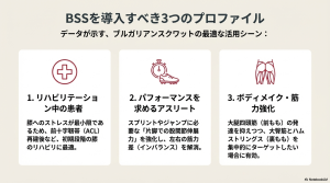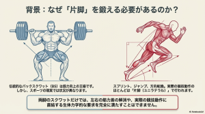 - 理由: スプリントや方向転換といった競技動作は、本質的に片脚で行われます。BGSQは「足首から股関節への連動(Foot-to-Hip integration)」を強いるため、バランス能力の向上と左右の筋力差解消に直結します。もしあなたの目標が「膝のストレスを抑えつつ、爆発的なヒップドライブを手に入れること」なら、BSSはメインウェポンになり得ます。