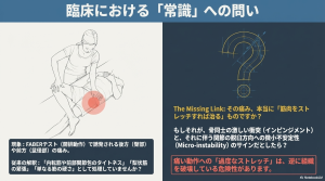 MRIで見える「構造の動的変化」を理解することが重要です。ただマッサージやストレッチをするのではなく、機能解剖的に考えて症状を見る必要があります。