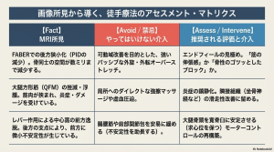 画像診断の知見を徒手療法の「手の感覚」と統合させるために、以下の3つを考える必要があります。