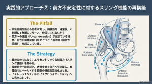 - 評価のアップデート: FABERテスト時の痛みを、小転子ではなく「転子間稜」と坐骨の間の空間狭小化として解剖学的に再解釈する。