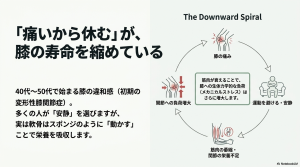 - 「低強度でも継続」が成功の鍵: 無理な高負荷は不要です。週3回以上の頻度で3ヶ月続けることが、将来の自由な歩行への近道です。「手術が必要な段階」になる前に、正しい運動習慣を身につけていきましょう!