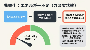 なぜ三兆候が起こるのか。その最大の理由は、知識不足による食事制限や、「痩せればパフォーマンスが上がる」という誤った思い込みです。